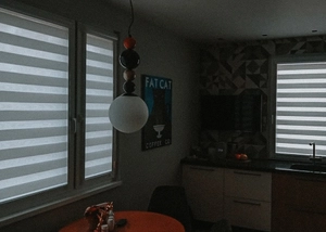 - Система Зебра состоит из двух слоёв ткани, с чередованием вставок из сетки и плотного материала, при наложении друд на друга создают эффект "зебры", что позволяет регулировать ровень освещенности