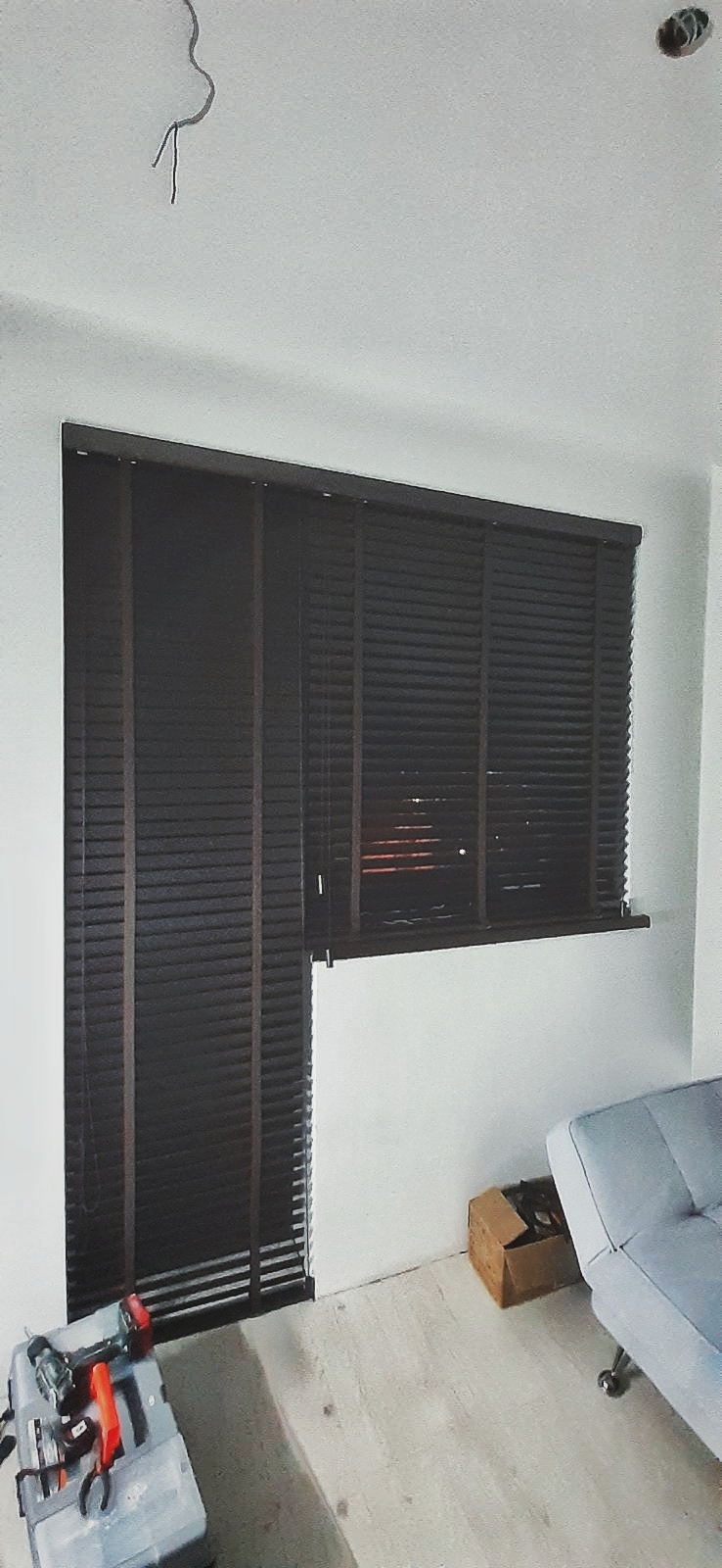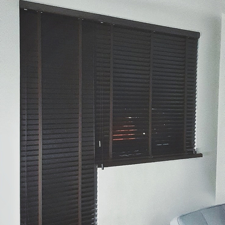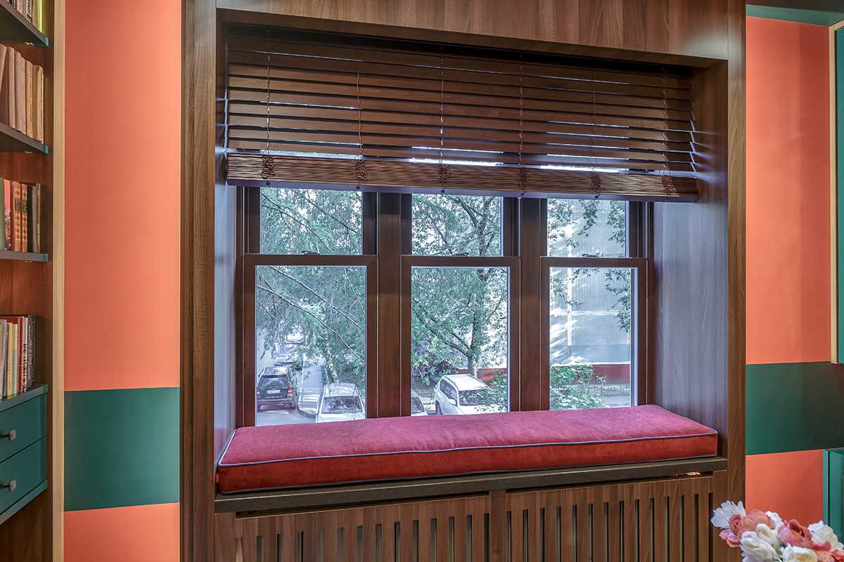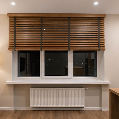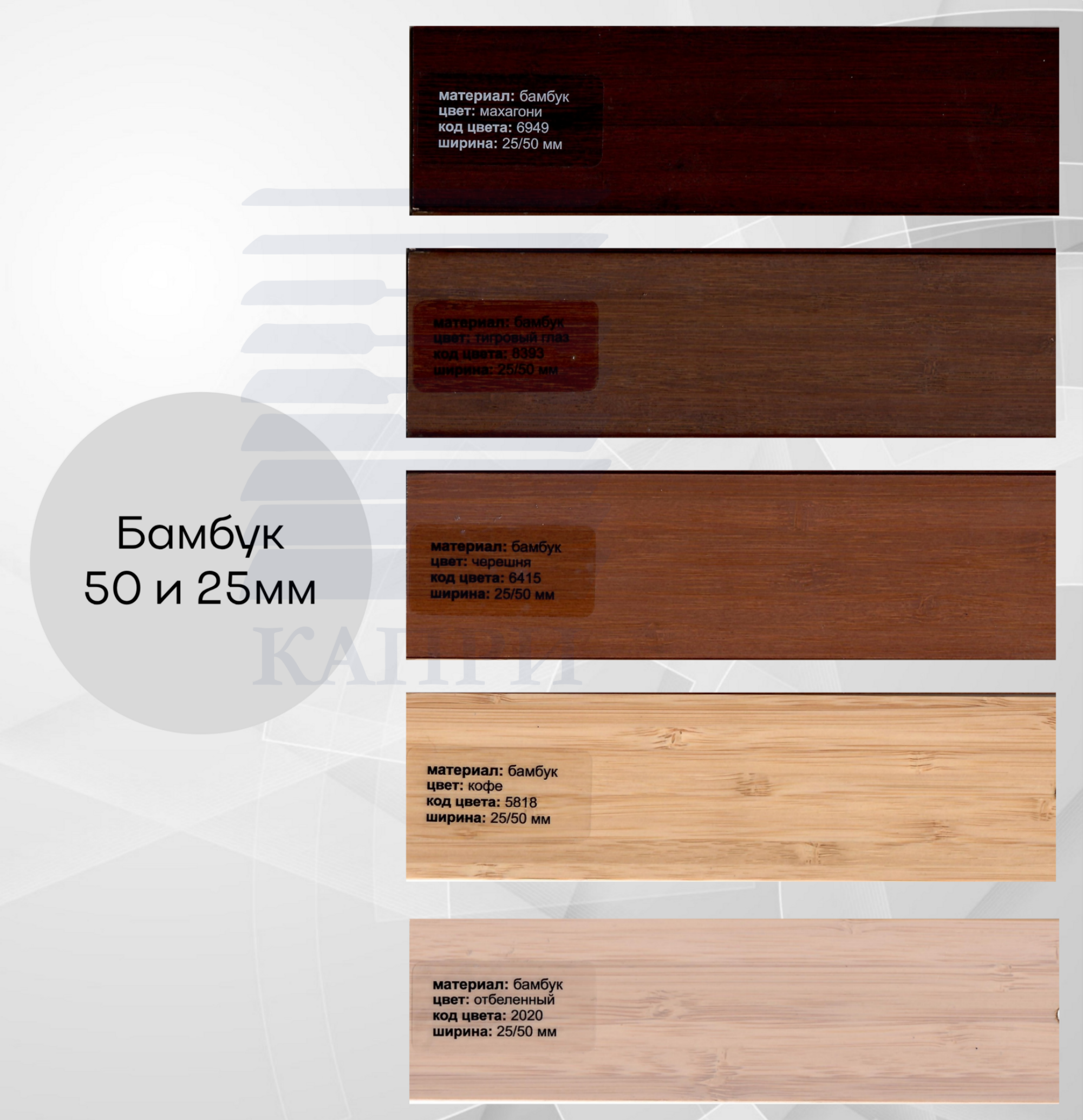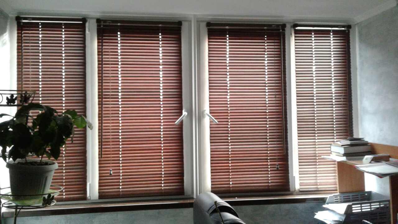Горизонтальные жалюзи с ламелями из дерева и бамбука шириной 25 мм рекомендуются для установки как на створку окна, так и в/на проем малых и средних размеров.