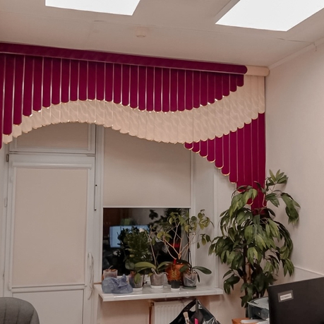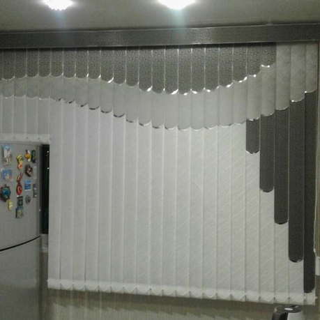 | Ламели (полотна) | Вертикальные полосы. Ширина 89 мм . Выполнены из пластикового грувера,куда вставляются несколько слоев ткани, пластика или алюминия. Ткань можно использовать полузатемняющую или BLACKOUT (с прорезиненным слоем с изнаночной стороны). |