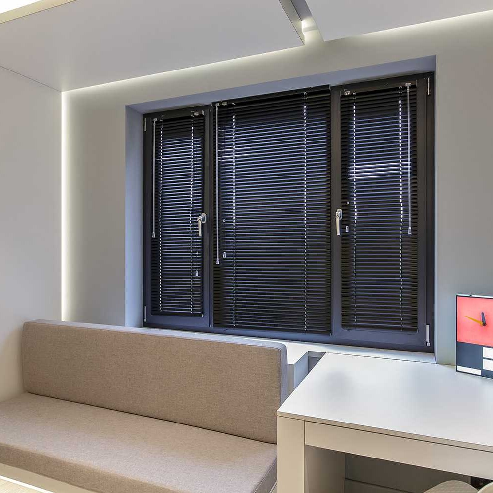 Горизонтальные алюминиевые жалюзи 16/25 мм рекомендуются для установки снаружи/внутри проемов и на оконную раму.