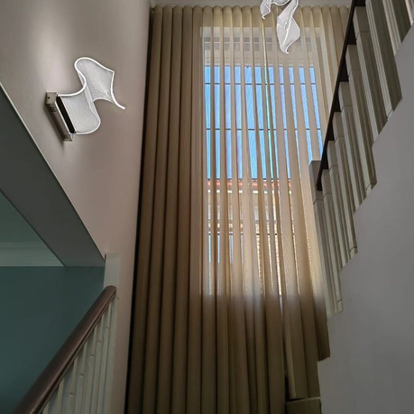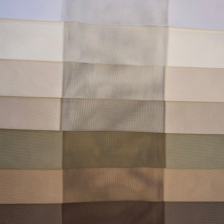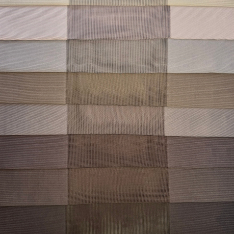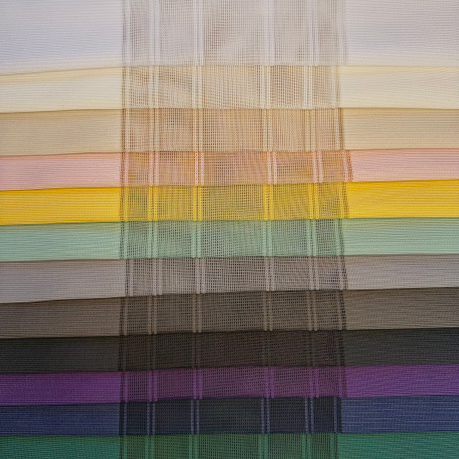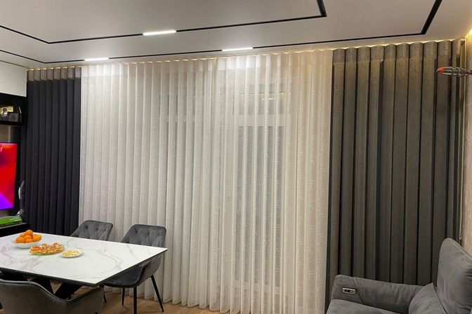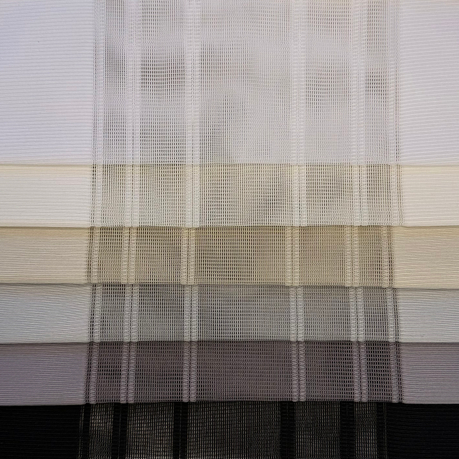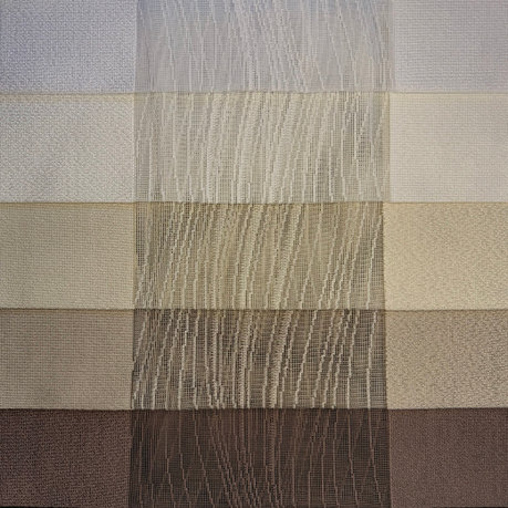 Вертикальные тюлевые жалюзи — это гибридная светозащитная система, сочетающая механизм классических вертикальных жалюзи с эстетикой портьерных штор. Вместо плотных пластиковых или металлических ламелей используются вертикальные полосы шириной 40 см, центральная часть у которых выполнена полупрозрачной вставкой,а края сотканы из плотного материала. Таким образом, при развороте ламелей создается приятное рассеивание света и создается эффект вуали. Но когда вы развернете ламели в закрытое положение, плотные вставки ткани перекроют полностью световой поток и создадут в помещении очень хорошее затемнение.