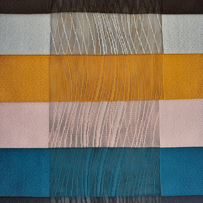 -Тканевые полотна по 40 см, центральная часть у которых выполнена полупрозрачной вставкой,а края сотканы из плотного материала