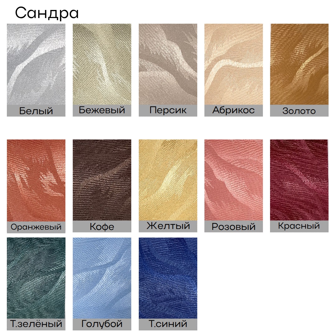 | ✅ Ткань полиэстер | Лучший вариант для жилых помещений. Плотная пропитанная ткань, не мнётся, не выцветает, не впитывает пыль и жир. Есть ткани с 50% затемнением и ткани BLACKOUT с прорезиненным слоем,который обеспечит отличное затемнение, что так актуально в условиях полярного дня. | Спальня, зал, детская, кухня, офис |
